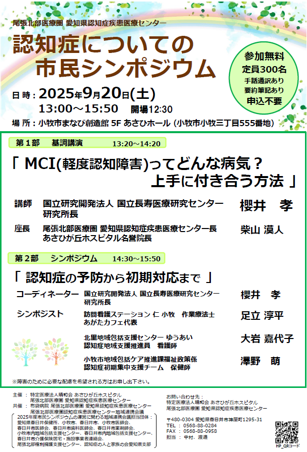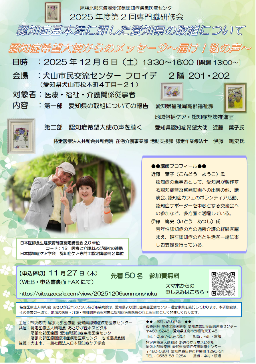 只今、2026年度認知症疾患医療センター主催の 市民シンポジウムを計画中です。