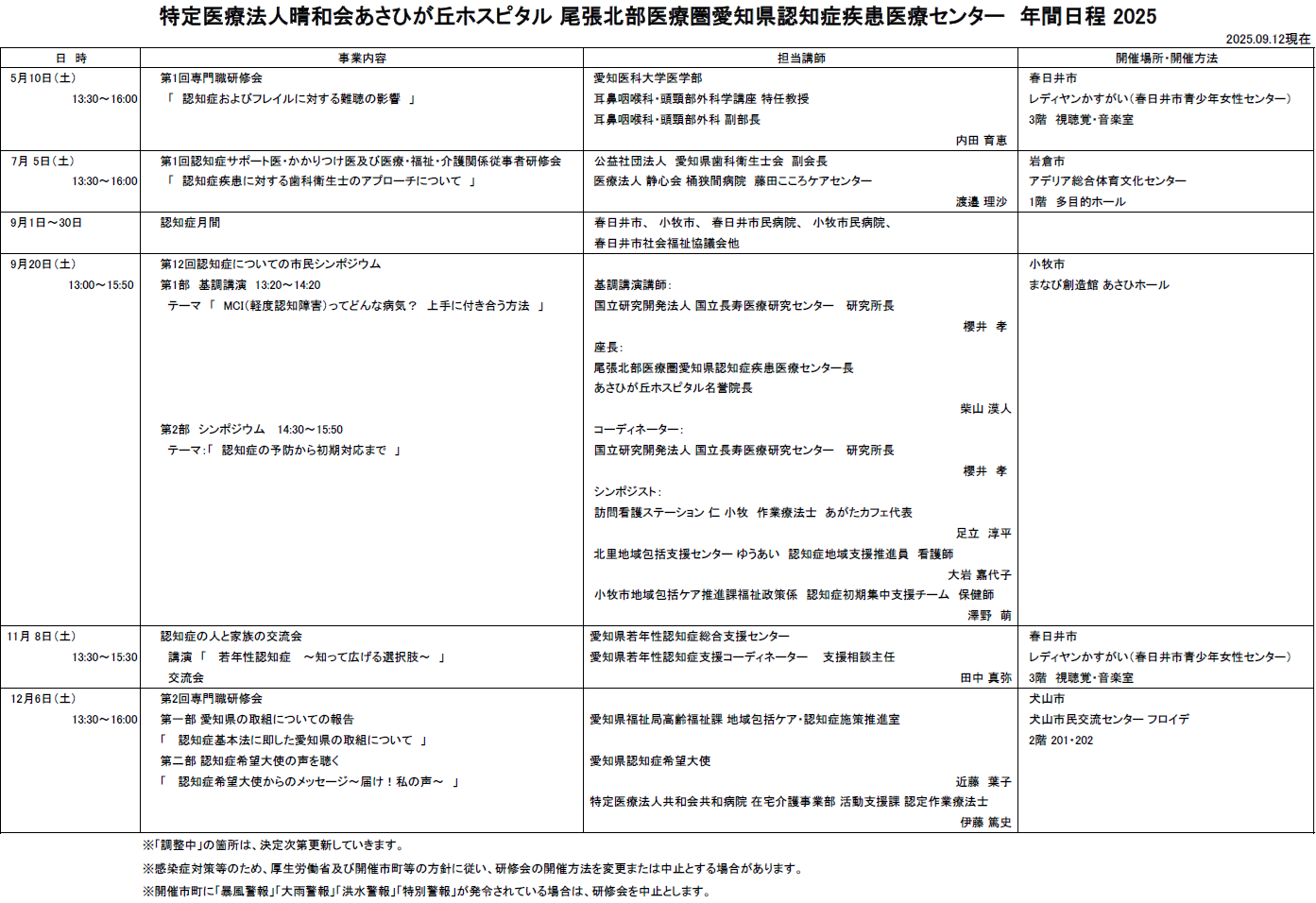 ※各種感染症流行等により、厚生労働省及び愛知県、開催市町等の方針に沿い検討し開催方法を変更する場合があります。